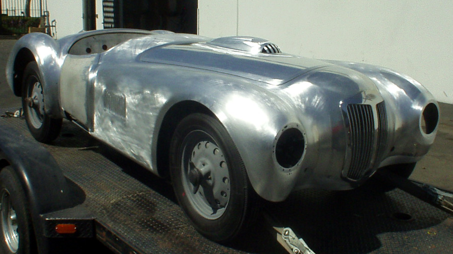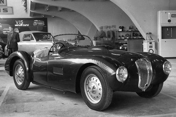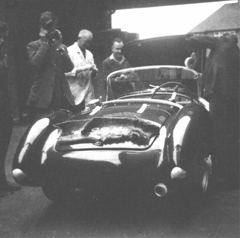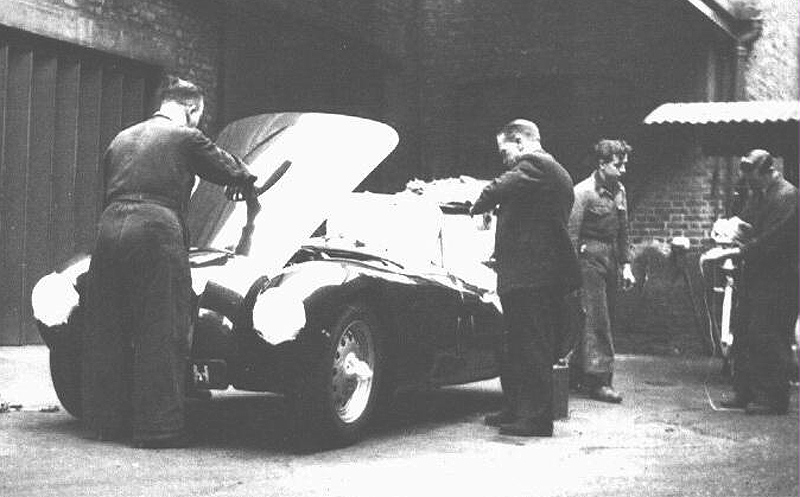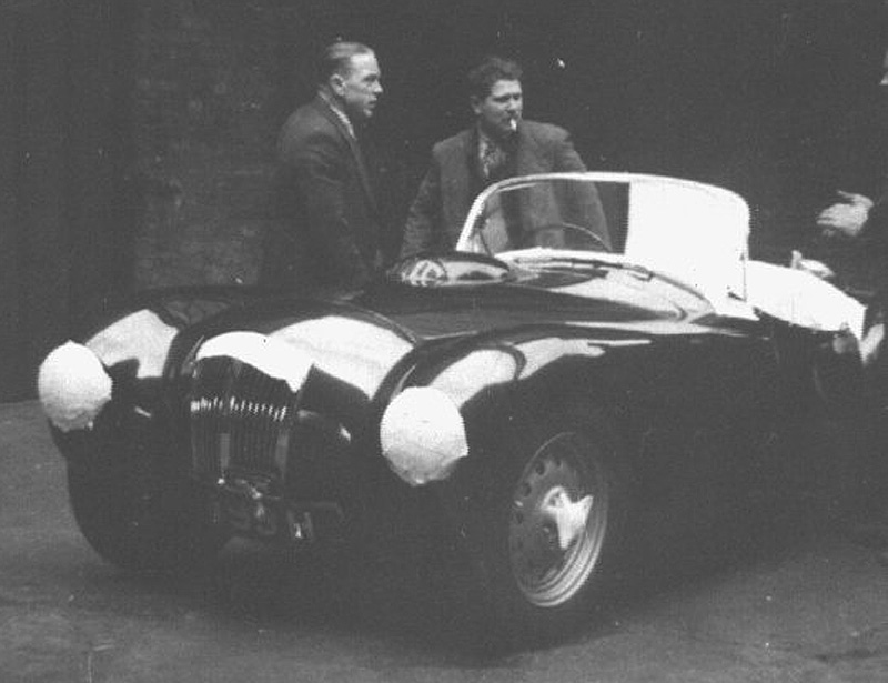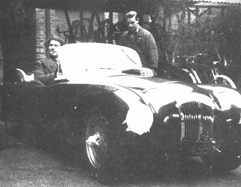 The photo below is from the AFN Archives. Notes with the the photo identify Stuart Donaldson and Commander Jipson at Floyd Bennett Field. Mr. Donaldson is listed as the original owner of several Frazer Nash cars brought into the United States and he may have been operating as an importer/dealer. The Navy aircraft appears to be a Grumman F9F Panther or Cougar. Later owners were Perry Boswell Sr., Captain J. I. Saubers (Palm Beach, Florida) and Robert Scott (Honolulu). There is no history yet of Mr. Donaldson's ownership. "Duke" Donaldson later was an owner-entrant of Indy cars, from 1957 through 1960 in the Indianapolis 500.