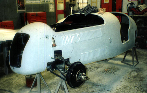 As my car was effectively killed by the works in 1950, I now consider "resurrection" most appropriate, as it did indeed arise from the dead. That story now follows. The History of 1948 Frazer Nash Le Mans Replica YH7559, powered by Engine Number 1051 AFN, makers of Frazer Nash cars, exhibited on their stand at the 1948 London motor show, a rolling chassis of their new sports car. The chassis was suspended from a large spring balance, supported by a tripod. This chassis was number 421/100/003, fitted with engine number 1051. This been the very same engine fitted in my car today. (see photo, also "C to T DSJ", page 141) This chassis was sold to racing driver Mike Tenbosch, who after having it fitted with the ugly all enveloping Fox & Nichol body, which the works had removed from E2 (the second experimental car). He entered the car for the 1949 Mille Miglia, starting as race number 627, but failing to finish due to mechanical trouble. (see "C to T DSJ", pages 233-236; also letter from RAC to self, reasons for engine stamping by that authority; photo of car at start). After failing to complete the Mille Miglia, Tenbosch returned his car to the AFN works in late 1949. Early in 1950, it was completely dismantled. The chassis of 003 been used to build 421/100/121, engine no. 1051, which had powered the car in the Mille Miglia race, was then fitted into 421/100/116. All these facts are recorded in Jenkinson’s book ("C to T DSJ", page 303, appendix 3). Subsequently 421/100/116 was fitted with a later type engine at AFN works and engine no. 1051 returned to their stores. Unbelievably in 1954, engine no. 1051 left AFN works for a third time in another new car, 421/200/190. In 1956, this car was fitted with a Bristol BS4 unit at the works of AFN, so once again the historic ex-Mille Miglia engine 1051 was back in AFN stores, remaining there until car production ended in the late fifties. After that it was in the hands of Betty Haig, who raced a Frazer Nash. Later it passed into the hands of the well-known Cooper Bristol racer, Roddy McPherson, probably the foremost authority on the Bristol engine (see letter to the registrar of the F/N section of the VSCC, also registrar's letter to myself, confirming 1051’s provenance beyond doubt). McPherson sold the engine and its gearbox in the late sixties to a Frazer Nash enthusiast who already had many genuine FN parts. A decision was made to build a car around this historic engine. The vital item with which to start been a chassis. As no original chassis was available, a completely new frame was made at Buxted by Crosthwaite & Gardiner, been identical in every way to the original. The fact that this was done at the time that C & G had jigs set up for the rebuild of 421/100/006 (now owned by my friend Peter Jackson) for Stephen Curtis, ensured that it was correct. This chassis was numbered 421/100/003R, to indicate that it was a replacement for the original 421/100/003 from which engine 1051 was removed in 1950 by the AFN works (see letter from C & G). The new aluminium bodywork was made for the car by Peel's of Kingston on Thames, who at times had made bodies for AFN. This firm also made the new bodywork now on Jackson's 421/100/006, using the same buck, ensuring that the body form is exactly as per original. The work of assembling the various parts into a complete vehicle was undertaken for the then owner by Gerald Brigham, over a number of years. When purchased in 1997, the car was still not finished, twenty odd years after the project was started. I personally dismantled the car completely, sending the chassis/bodywork into the paint shop for preparation and painting, this taking a month. Whilst the engine and gearbox were out, the flywheel was skimmed and a complete new clutch assembly fitted, all brake cylinder rubbers replaced, along with linings and the front spring reset. After six months solid work, the car was completed and on the road. YH7559 - 1998 Apart from engine 1051's competition history in the 1949 Mille Miglia, it has further historical significance, in that it is the oldest postwar Frazer Nash engine extent. Jenkinson, in his book ("C to T DSJ"), says that an initial batch of four engines was produced by Bristol for Frazer Nash in 1948. These, he states, to be standard 85 BHP Bristol units. This has been proved to be incorrect. In fact, AFN gave a specification to Bristol based on their experience of racing the prewar BMW 328 cars, for which they held the agency. These first four engines were: 1051, 1053, 1055 & 1056. All were quite different to the normal Bristol unit by way of different crankshafts, camshafts, cylinder heads, valve sizes and distributor. Power output was raised from 85 BHP in the standard Bristol unit to 125 BHP in the Frazer Nash (see dyno test sheets on 1051 supplied by Jennings, who undertook the tests during his time at AFN in the 1950's, also an extract from his book). As stated by Jennings, these tests showed that power output of these first engines to be comparable with the later "FNS" series. YRO 405 - Now YH7559 Finally as the reader will be aware, this car is a "bitsa", made up of parts and not a factory-constructed car with continuous history. It is however, built with genuine Frazer Nash components, apart from the replacement chassis, as no genuine one was available. It does contain all the right bits, and as such provides a suitable home for its historic engine. Needless to say it drives just as would be expected of a factory-built Frazer Nash. I doubt if any other manufacturer of motorcars has ever sold the same engine as new in three different cars and that after it had competed in one of the world’s most grueling motor races, the Mille Miglia! (Footnote: In January 2001, I competed in the VCC Dreyers Rock road speed hillclimb with the car, setting fastest time of the day, 60.46 seconds for the 1.1 mile course. Posted: May 22, 2001 |